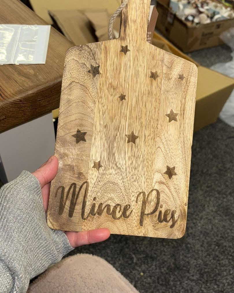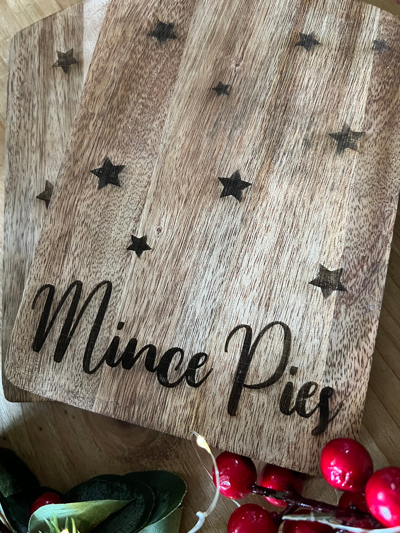 Gorgeous rustic wooden serving boards to serve your mince pies on this Christmas!