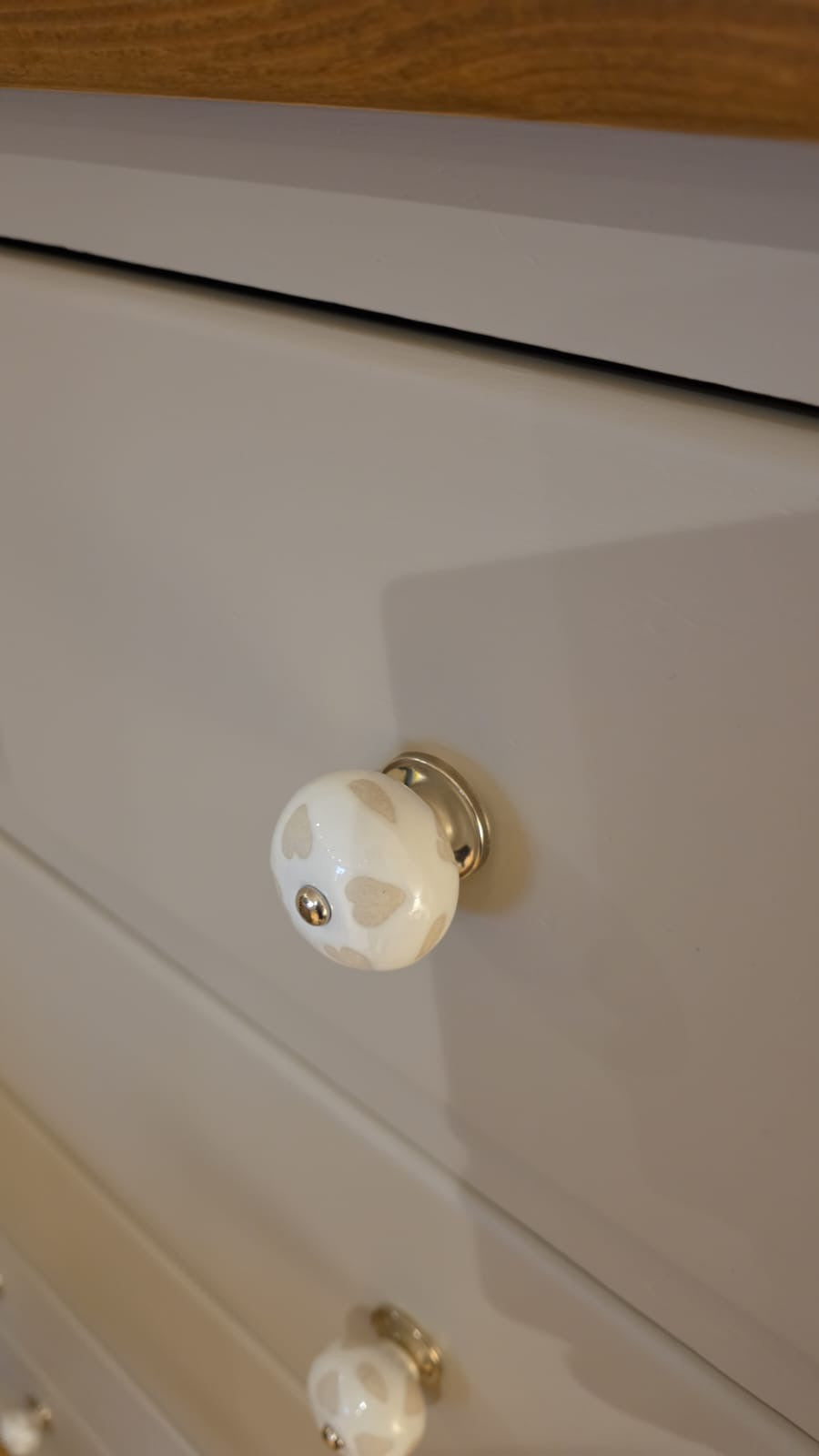 Beautiful Large Chest Of Drawers.. These are very heavy drawers, Solid throughout with Dovetail Joints. Hand Painted in Frenchic Smoke Signal. The Top has been sanded & waxed using Frenchic Browning Wax. I have added pretty heart knobs which finish it beautifully.